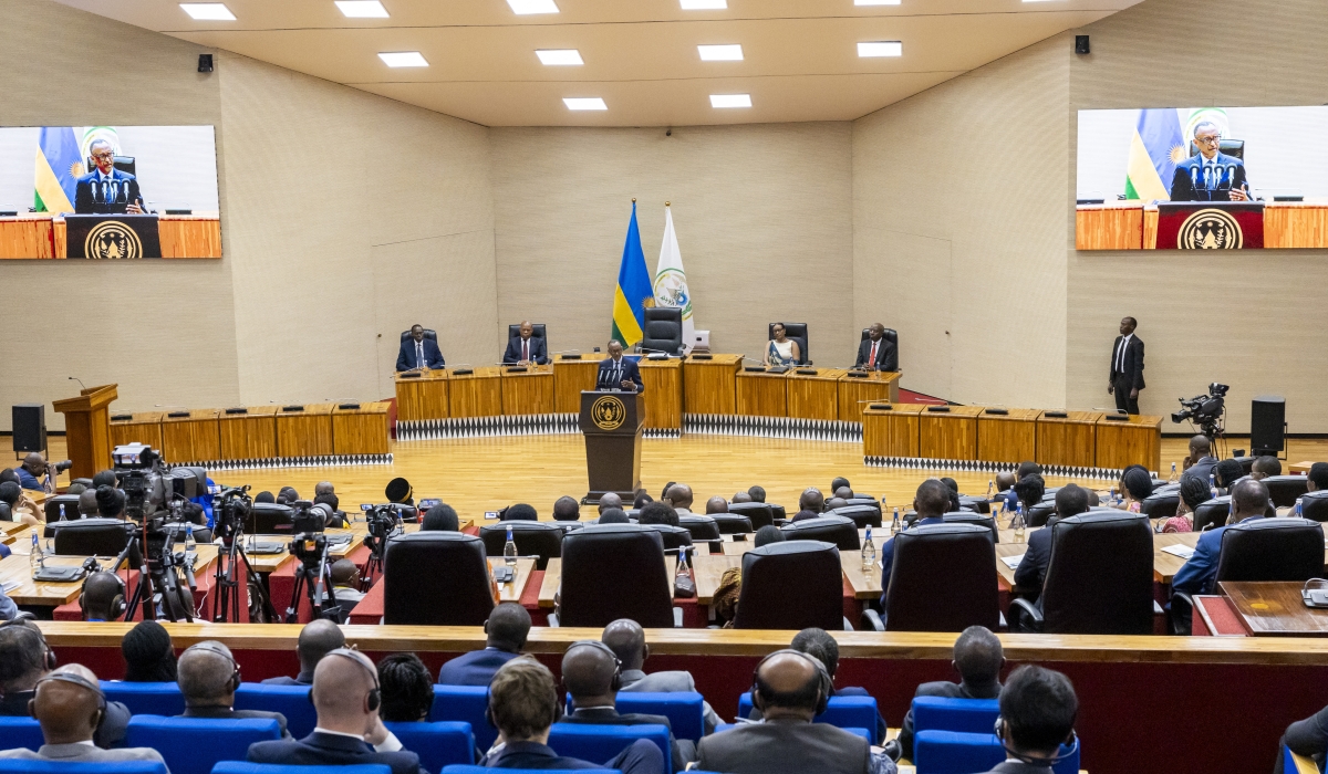 President Paul Kagame speaks during the swearing-in ceremony of the newly appointed government official, and dissolution of the Chamber of Deputies at parliament in Kigali on June 14, Photo by Oliver Mugwiza