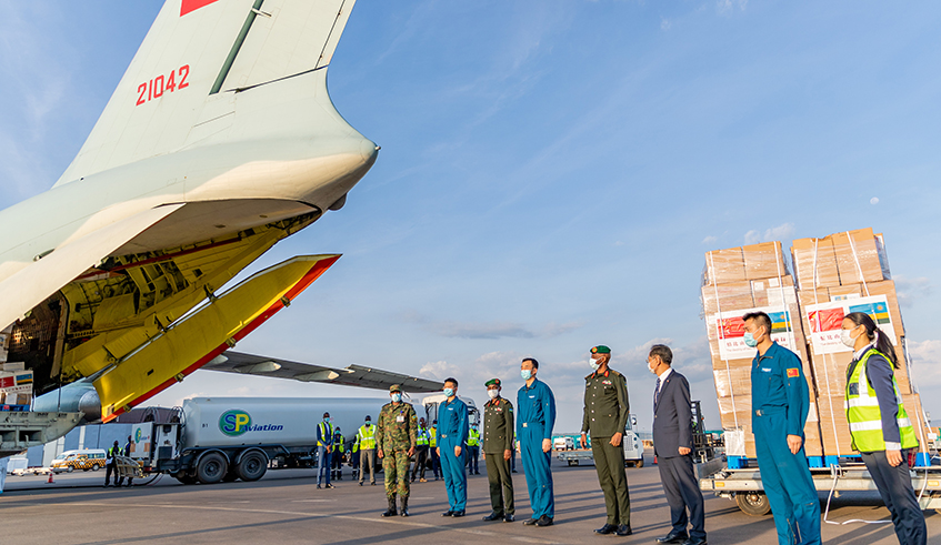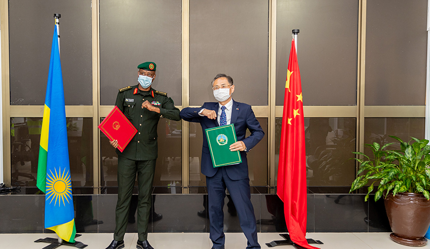 Gen. Jean Bosco Kazura, Rwanda’s Chief of Defence Staff and Rao Hongwei the Chinese ambassador to Rwanda after signing the handover in Kigali on 3 June 2020