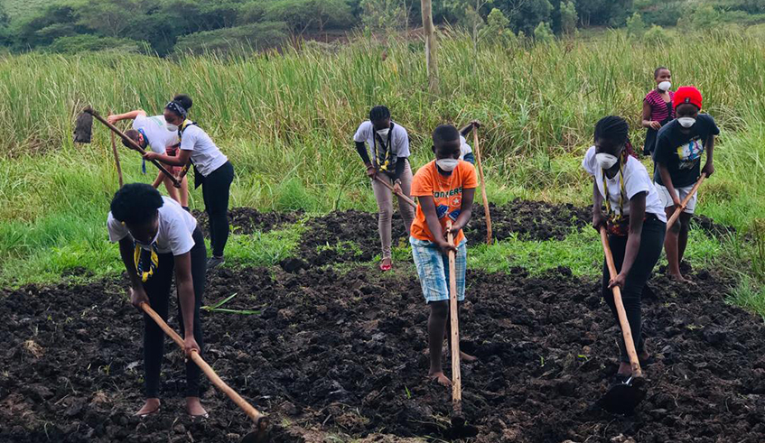 Girl guides cultivating land to plant crops. . / Courtesy photos