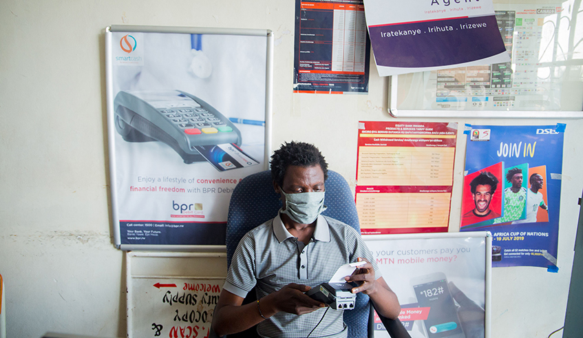 A BPR Hafi Agent at an outlet in Kigali. BPR has over 300 agents providing a range of services including cash deposit and withdrawal, sending and receiving money, paying taxes and balance inquiry among others. / Photo: Dan Nsengiyumva.