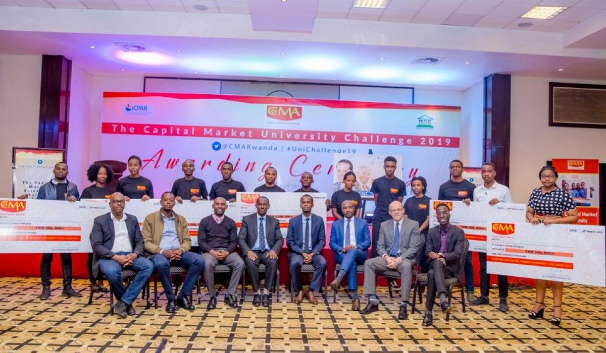 Officials pose for a group photo with the winners of the previous competition. Winners of the 11th edition of Capital Market University Challenge will be announced during the ceremony slated for Friday, June 21.