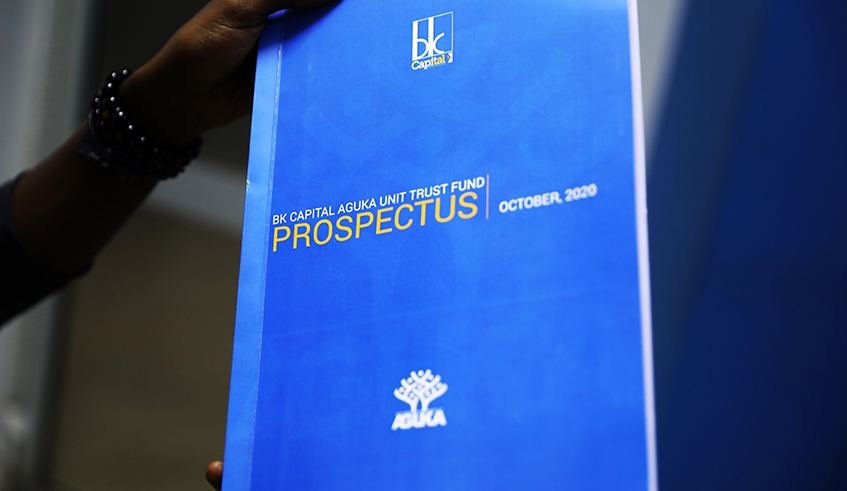 BK Group’s youngest subsidiary, BK Capital on Tuesday October 13, launched a trust fund dubbed Aguka Unit Trust Fund. Aguka will operate as an open-ended unit trust fund pooling funds from investors, investing and managing the money within a diversified portfolio on their behalf and distributing the profits regularly. Below are key aspects about the trust fund: Who can invest? The trust fund is an open-ended unit trust fund and is open to individual citizens and residents, the Rwandan community abroad as well as local corporations and institutions. East African Community nationals and international investors within the permissible legal framework are also allowed to invest. Carine Umutoni, the Managing Director of BK Capital said that they are targeting all segments of the marketing including individuals, institutions, savings groups, investment groups and anyone seeking to save or invest their funds. BK Capital which is the investment manager injected a seed capital of about Rwf200m to support the fund achieve scale on launch. How to invest The Fund offering opened on Tuesday 13, October 2020 until 13 November 2020 where interested investors can ‘purchase’ units at Frw 100 per unit. The minimum investment is Frw100,000 which is worth 1,000 units during the subscription period. After 13th November 2020, interested investors will still be able to invest by buying units in the fund at the net asset value which will be published daily. Investors can buy units on any given business day in Rwanda Prospectus documents and application forms are available at all Bank of Kigali Branches countrywide. Where will the trust fund invest? According to the prospectus document, the fund will invest in a diversified portfolio of money market instruments, cash deposits, and debt instruments issued by the Government of Rwanda and corporate entities operating in Rwanda. Umutoni said that they see an opportunity in government bonds which are regular and have multiple options of tenure. “We are going to spread the investment across all tenures with the intention to trade. We will also make investment in other big funds that are going to be available on the market,” she said. With Rwanda in the process of establishing itself as a financial hub in the region through the Kigali International Financial Centre (KIFC) and plans to grow capital markets, the fund managers are confident of multiple opportunities for investment in coming days. Some of the funds according to Umutoni will also be invested in BK Group’s banking subsidiary, Bank of Kigali. What are the returns on investment? The fund is positioned as a low risk product with a diversified asset allocation making it capable of generating a competitive rate of return on investment when compared to traditional savings deposits and treasury bills. Following the closing of the offer, the investment manager will disclose the net asset value which will reveal the total value of the fund. BK Capital will also calculate and disclose the net asset value and annual yield every business day allowing investors to keep track of the performance of their funds The managers of the fund say that they are aiming at achieving a competitive level of return, with high liquidity by investing its assets in a diversified Rwandan investment portfolio. Investors will also enjoy liquidity with options to redeem their funds within 48 hours. With that, an individual investor can be able trade in their units and cash out on request and receive their funds in not more than 48 hours without charge. The fund also promises regular cash flow with investors receiving interest payments at least twice a year. How does it promote domestic savings? The fund also seeks to support Rwanda’s domestic savings ambition from the current about 12 per cent to the targeted 24 per cent by 2024. For domestic savings to grow, there has to be multiple avenues of investment in an economy. Higher domestic savings rate creates a means towards self-reliance, investment, growth as well as economic resilience. Personal savings by households and individuals in the form of cash or assets such as land which are common in Rwanda do not necessarily mean a growth in domestic savings. For the personal savings to count as domestic savings, they have to be invested and generate income hence the need for avenues such as trust funds. Previously, there has only been one similar fund Rwanda National Investment Trust Ltd which runs Iterambere Fund. The fund is tax exempt as part of the government’s move to encourage an increase in domestic savings through investment funds.