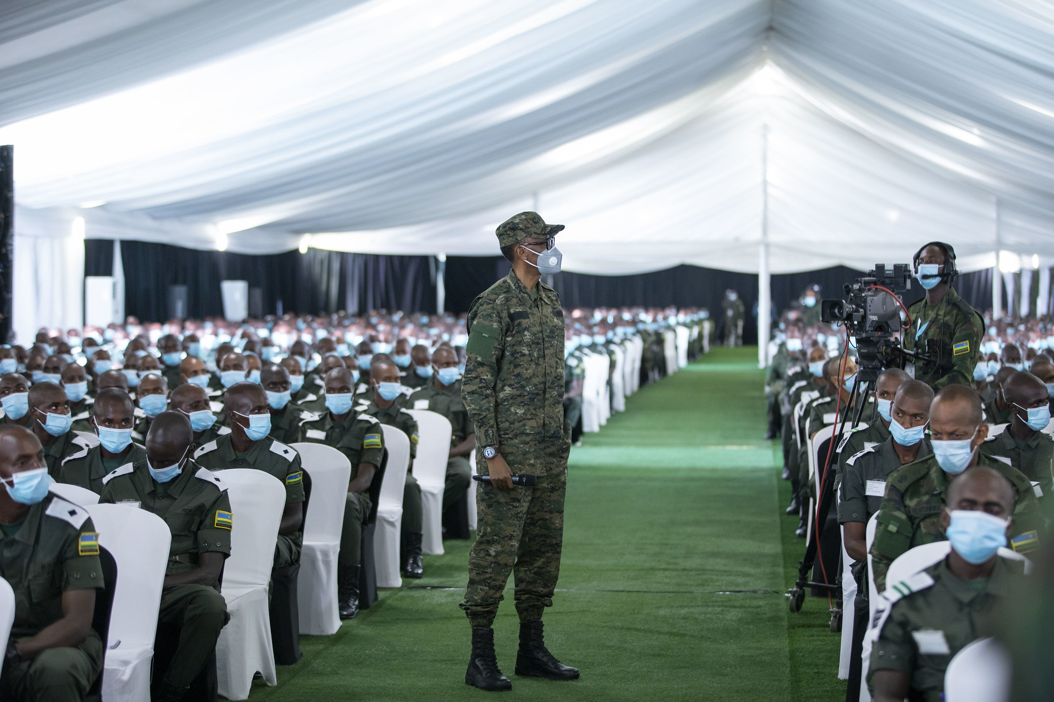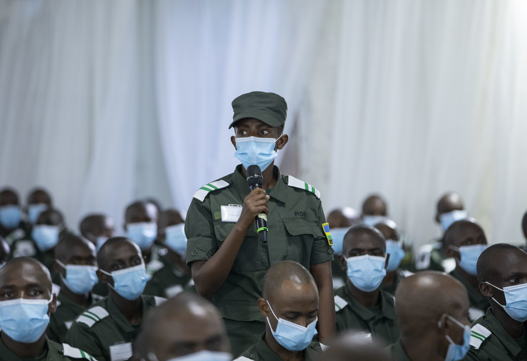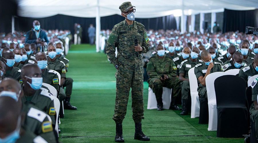 President Paul Kagame, who is also the Commander-in-Chief of Rwanda Defense Force (RDF), briefs Cadet Officers at the Rwanda Military Academy-Gako in Bugesera District, Eastern Province, on Thursday, October 29, 2020. / Photo: Village Urugwiro