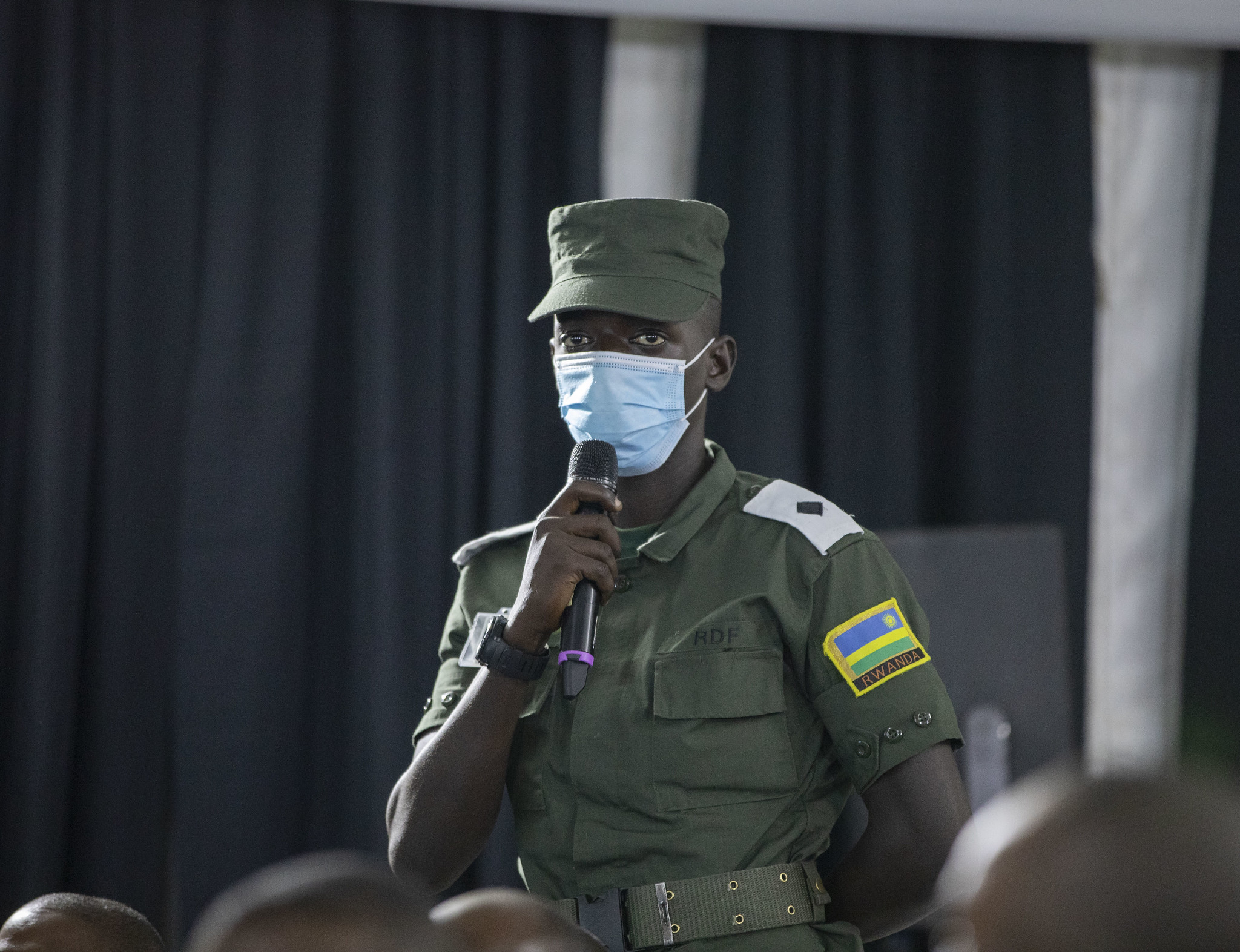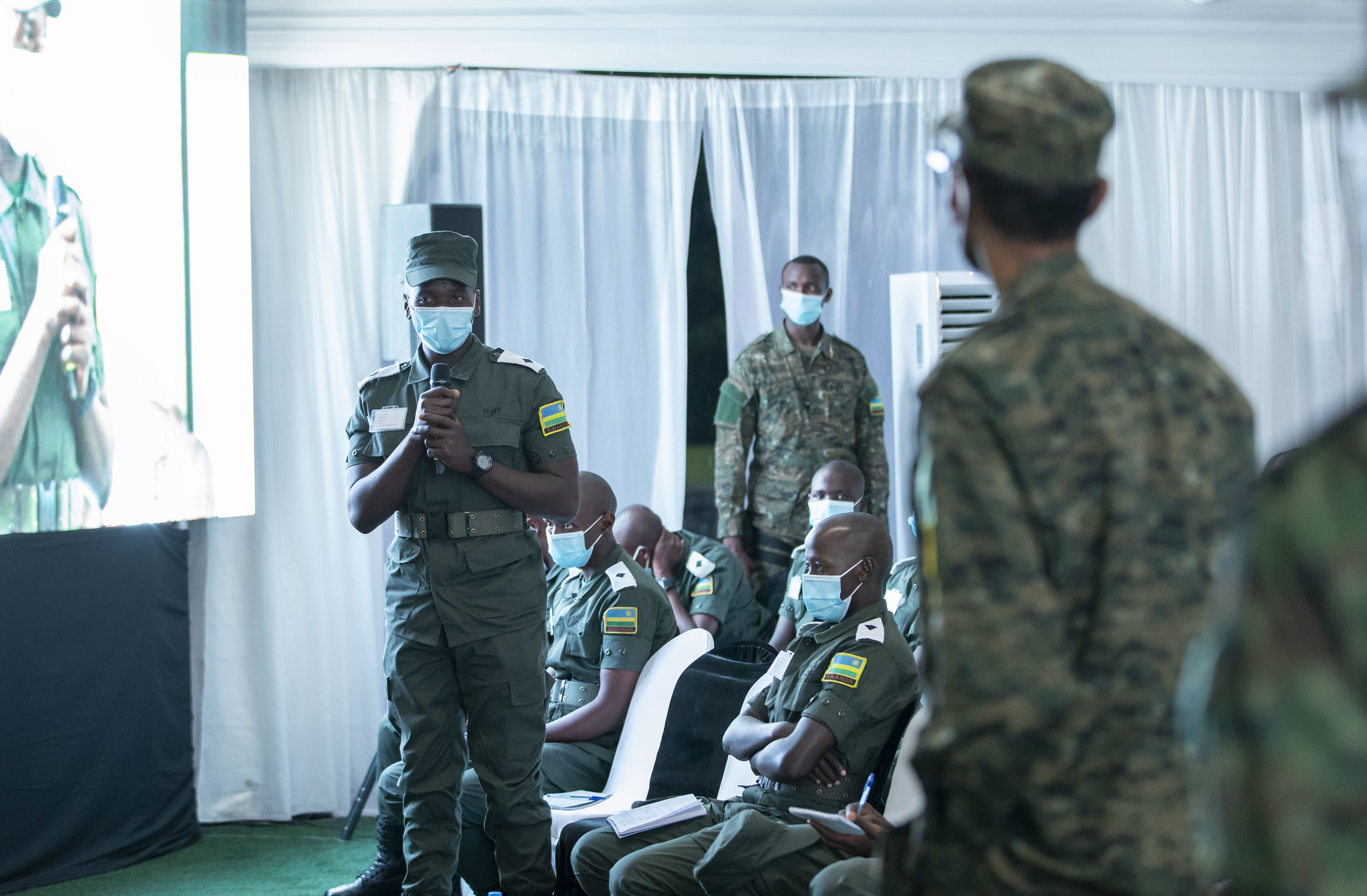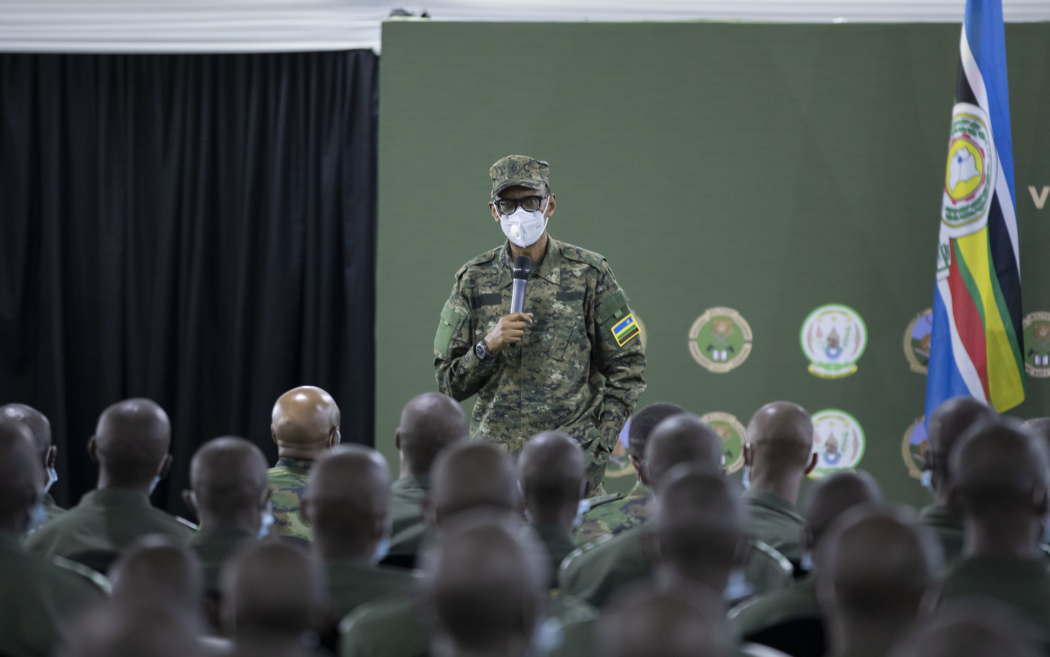 President Paul Kagame, who is also the Commander-in-Chief of Rwanda Defense Force (RDF), briefs Cadet Officers at the Rwanda Military Academy-Gako in Bugesera District, Eastern Province, on Thursday, October 29, 2020. / Photo: Village Urugwiro