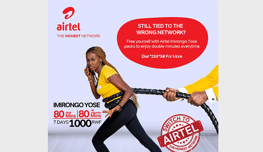 Airtel Rwanda recently launched a new advertising campaign which has been interpreted as targeting clients on its rival MTN network. This has triggered mixed reactions from the public owing to the nature of the campaign. Although the ad does not explicitly mention the rival by name, it uses the brand colours and, after all, Rwanda has only two mobile networks, making it pretty obvious who is being aimed at. “Why stick to the wrong network?” one Twitter post by Airtel asks. The post features a photo in which one individual dressed in a ‘yellow’ T-shirt and denim jeans seemingly speaking on the phone and a rope tied around his waist is being pulled by someone from the back. “Now is the time to free yourself with #AirtelIsanzure,” it says. The Rwandan market has not really seen competing companies openly attack each other, making this new ad draw mixed reactions. “Untie yourself from the wrong network with Imirongo Yose pack and get to enjoy double minutes every time,” another related post, which this time features a woman, says. Users on social media generally had mixed feelings. One Twitter user with a handle @elicanngango replied, saying: “This is sarcastic!” Another said: “The way you named another wrong network while you are! How honest are you with 2weeks without reversing my airtime?” Some people say this is proof companies are getting bolder and willing to play dirty to win over clients, while others argue that the move by Airtel is in bad faith and will only spark unfair competition practices. According to marketing experts, rivalry between companies is nothing new, but what is important is finding balance between creativity and fairness, even though the lines separating the two are not that clear. Henry Mapesa, a PR and Journalism lecturer at Mount Kenya University Rwanda, says it’s against ethics of public relations and branding for any company to draw a campaign that uses any branding element of another company. “In this case, the colours of branding used in the campaign are publicly known to represent MTN Rwanda. The moment you do that you immediately cross the line,” the professor asserts. Even if it was creativity, he adds, it should play within your territory, going ahead to blame the “misunderstanding” on the fact that some organisations have members of public relations with no expertise. It’s normal, others say Other public relations experts say it’s normal especially in a market that is becoming competitive. Maurice Baluku, who owns a PR agency based in Kigali believes an open market where aggressive forces of demand and supply are heavily in play, the practice by Airtel is the reality. “Sending jabs at competition is “normal” and it’s how brands are able to build on the equity that they heavily desire,” he argued. “Being disruptive is key to building stickiness and becoming the brand that people can talk about.” Case in point is Apple’s campaign from 2006 that pitted “Mac” against “PC” in a heavily satirical campaign that threw major jabs at PC. “From that day, Apple sealed its position as an industry thought-leader.” “Airtel is trying to be disruptive by throwing a spanner at its competition by saying you have a reason to switch,” David Kezio Musoke, a PR practitioner based in Kigali, notes. He describes it as “guerilla marketing” saying there is no law or regulation that protects or guides branding on that. “That said, I find the Airtel campaign a total waste.” If the campaign is targeting the mass market, he asserts, then it’s a waste of resources because most revenue-generating subscribers in the mass market actually have two lines so they don’t need to switch. The New Times reached out to MTN Rwanda to ask what they thought about the new ad, and Yvonne Mubiligi, Head of Corporate Affairs said: “I believe any campaign about Airtel should be asked Airtel.” She indicated that “what Airtel does is not within our concern,” and rather she chose to say that they were busy closing their financial year. According to Rwanda Utilities Regulatory Authority statistics, MTN was controlling the biggest market share – 59.8 per cent with Airtel remaining with 40.2 per cent – as of June this year. Efforts to get comment from Airtel Rwanda were futile by press time.
