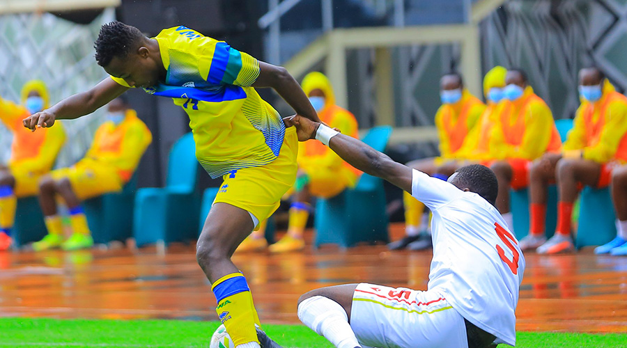 Amavubi striker Lague Byiringiro goes past a Congo-Brazzaville defender during the friendly match at Amahoro National Stadium on Sunday, January 10. Cameroon will allow a limited number of football fans into stadiums during the CHAN 2020 tournament.