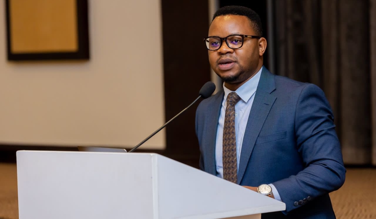 Yves Iradukunda, Permanent Secretary in the Ministry of ICT and Innovation speaks to media, on October 17, during a press briefing on the conference organised by the Global Systems of Mobile Associations. Courtesy