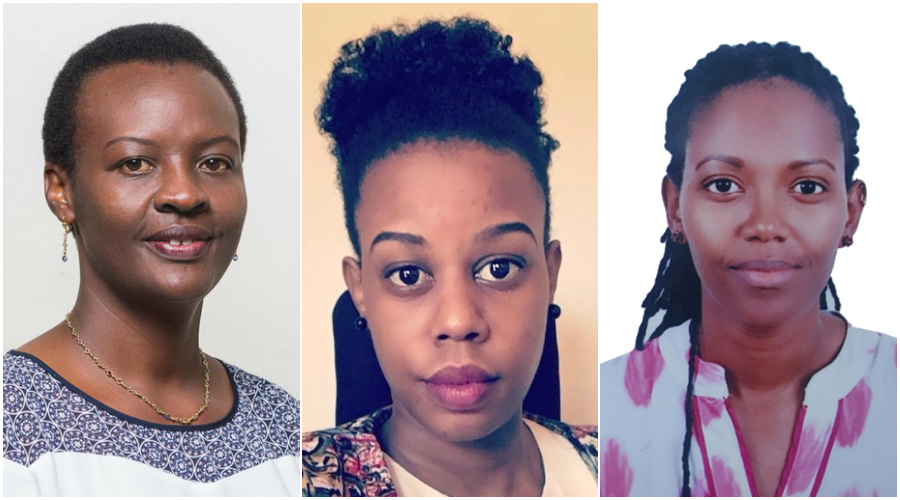 L-R: Rita Kamanzi, the Chief Human Resource Officer at AOS; Gloria Ingabire, PR & Branding Officer; and Annick Tuyishime, Cloud Systems Manager.