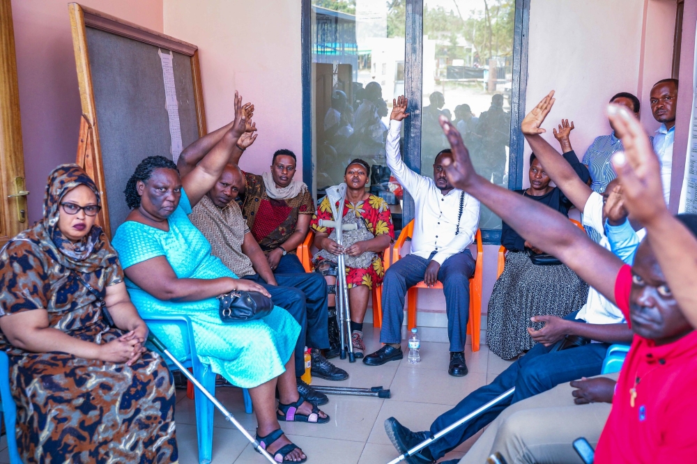 Voters from people with disabilities before casting their votes at the polling site to vote a member of parliament to represent persons with disabilities in the Chamber of Deputies, in Nyarugenge District on Tuesday, July 16. Photos by Craish Bahizi