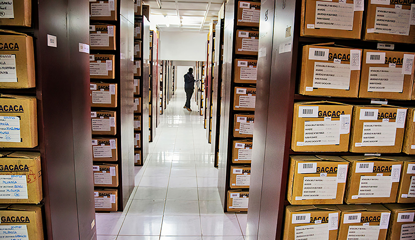 Some of the boxes that contain the genocide archives in a storeroom in Kigali. Gacaca justice system officially closed in 2012, after trying more than 1.9 million Genocide cases in ten years. / Photo: File.