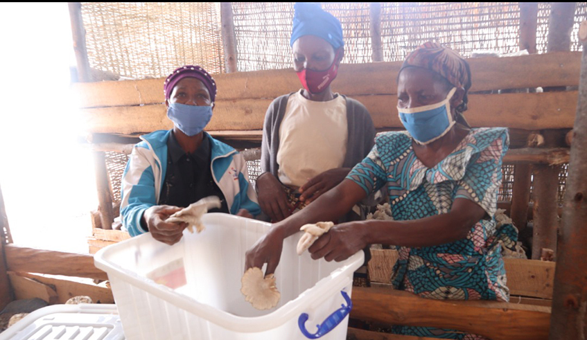 After 1994 Genocide against the Tutsi which claimed over one million lives, Rwandans of all walks of life embarked on a journey to rebuild the country with a focus on promoting unity and reconciliation. It is in this context that women from Nyanza District formed a savings and credit cooperative composed of genocide widows and women whose husbands were in prison for genocide crimes as a strong platform to promote unity and reconciliation for sustainable development. Currently the association has turned into an agribusiness cooperative with 30 members and so far as Rwanda marks 27th commemoration of the 1994 Genocide against the Tutsi, they are reaping big from mushroom growing which has built survivors’ resilience. She said the saving group started with 12 women grouped themselves together in 1995 after 1994 genocide against the Tutsi. “We started as a savings and loans group contributing Rwf100 every week. The group included genocide widows and women whose husbands were in prison convicted of genocide crimes. From the savings members would acquire loans to satisfy some basic needs,” said Jeannette Kanzayire, is the President of “Twisungane Iwacu Cooperative in Mukingo sector, Mpanga cell. She said that after Genocide against the Tutsi, most of them were facing many issues as the country’s economy had also collapsed. “The women had no food, no clothes, children were not studying. It was a bad life and therefore we gathered to think of our future and also counselling one another,” she narrated. The savings, she said, inspired them to exploit one of the arable wetlands in the area. “We used to grow cabbages, feed our families and sell the rest. This really improved our lives. However agricultural productivity was not satisfactory since we had no domestic animals to help us get manure,” she said. She said that, later, local leaders linked the women with development partners that helped to boost their efforts. “We were given ten cows in 2007 and we built cow sheds. This helped us a lot since we would sell milk. When a cow would deliver, a heifer had to be passed on to a member of the group,” she said. On her side, with manure from the cows, the agricultural productivity has increased from 50 kilogrammes to over 400 kilogrammes on the same size of land. The widow, Kanzayire has managed to pay school fees for all her five children who have now completed university and she has gained leadership skills and confidence as she is a member of the women council in the cell and a member of Mukingo sector council. Magic money from mushroom growing Kanzayire said that they started buying mushroom spores from Kigali. “It was costly to buy mushroom spores from Kigali and that is why we started learning how to prepare our own spores after designing a project sponsored by Action Aid Rwanda,” she said. The group of women invests Rwf400 in preparing one mushroom spore. “If we want to sell it to other farmers to grow them, we sell one mushroom spore at Rwf500,” she said. She said that once grown up, one mushroom spore produces two kilogrammes. “We sell one Kilogramme at Rwf1, 500 meaning one mushroom spore produces Rwf3, 000 having invested Rwf400 only” she explained. By March 2021, the cooperative was growing 4,000 mushroom spores, meaning from which Rwf12 million produce was expected considering that one spore goes for Rwf3,000. Over Rwf30 million assets The cooperative, she said, now has over Rwf30 million in total assets including built up working places. “We have also got a machine worth Rwf1.5 million that dries mushrooms. Once installed, it will produce mushroom flour. We are targeting the export market,” she said. Currently she said they also have aside saving and loan groups where each member saves Rwf700 every week. “The women get loans from the savings and loan groups and carry out small income generating activities. This has also reduced unpaid care that affects many women. Women have now been empowered,” she noted.
