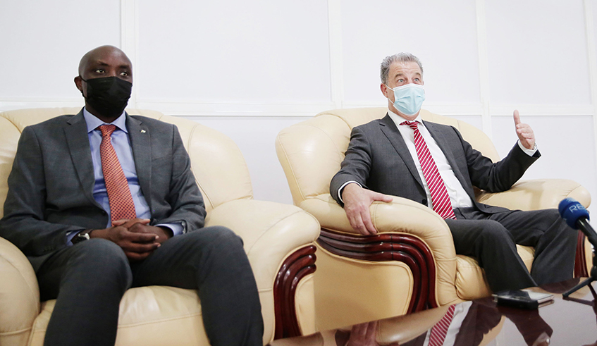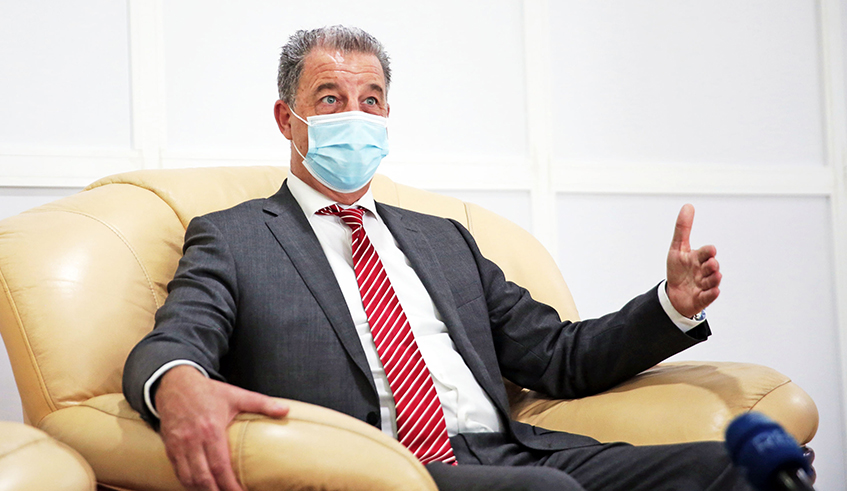 Serge Brammertz, the Chief Prosecutor of the International Residual Mechanism for International Criminal Tribunals, speaks to the media in Kigali on Tuesday, April 27. Frustrated by countries that are reluctant to arrest Genocide fugitives, Brammertz is now seeking more support from the UN Security Council. / Photo: Sam Ngendahimana.