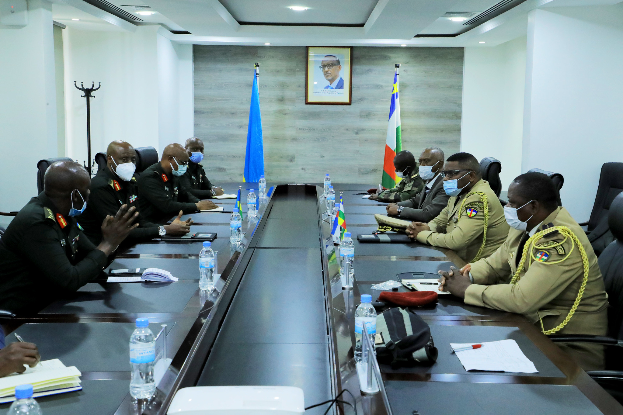 The Rwanda Defence Force (RDF) Chief of Defence Staff, General Jean-Bosco Kazura on Saturday received the chief of General Staff of the Central African Republic Armed Forces (FACA), Major General Zephlin Mamadou, who was in Rwanda to among others discuss strategies of defence cooperation. General Mamadou, according to a statement from RDF, was accompanied by a military team of experts from the government of CAR. Following their discussions, the two governments signed an implementation protocol in areas of operations and training. In addition, the statement noted that the officials deliberated on the implementation of the Defence Cooperation Agreement signed between CAR and Rwanda in October 2019. “I have come to Rwanda with a team of military experts to discuss the implementation of the Defence Cooperation Agreement that was earlier signed between our two countries. Maj. Gen Mamadou added, The signing of this protocol follows successful engagements of close cooperation between our two respective Defence forces. Rwanda is among the major troop contributors to the United Nations Multidimensional Integrated Stabilization Mission in the Central African Republic (MINUSCA). Currently, the government maintains two battalions and a Level Two Hospital under the initiative. The country has also deployed an additional battalion in the framework of bilateral agreement, that supports the consolidation of peace and security in Central African Republic.