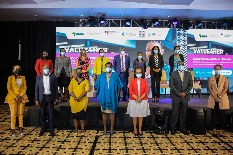 VALUE4HER, an Africa-wide programme aimed at improving the performance of women’s agribusinesses with the ultimate goal of increasing their incomes, is poised to boost Rwandan women’s enterprises. The programme seeks to increase the value of women’s agribusinesses through addressing challenges like market access, knowledge, skills and networks, and global advocacy which are considered major barriers for women in agriculture. Other barriers include lack of access to finance and investments. The VALUE4HER programme is powered by VALUE4HERConnect, which is under Alliance for a Green Revolution in Africa (AGRA). VALUE4HER Connect is a digital marketplace for women in agribusiness offering integrated business solutions to women agri-enterprises. The platform enhances visibility of women agribusinesses, helps them build collective capital and networks across the continent, while facilitating easier connections with buyers, financiers, and other business service providers, according to officials. During the VALUE4HER in-country networking and advocacy meeting held in Kigali on Friday, May 21, which was conducted in a hybrid format (with some participants attending physically, others online), participants commended it as a platform primed to advance women’s agribusiness. High-profile participants at the event included Gerardine Mukeshimana, the Minister of Agriculture and Animal Resources; Jeannette Bayisenge, Minister of Gender and Family Promotion; and Rosemary Mbabazi, Minister of Youth and Culture. Others are Agnes Kalibata, President of AGRA, Peter Vrooman, U.S. Ambassador to Rwanda, and Clare Akamanzi, CEO of Rwanda Development Board (RDB). Why VALUE4HER matters According to the African Development Bank, women in Africa face a financing gap of an estimated $42 billion across business value chains, including $15.6 billion in agriculture alone. Some of the reasons for the low financing for women’s agribusinesses include that they are perceived as riskier because they often do not have collaterals or guarantees, face prohibitive interest rates and they are mostly operating in the informal sector which falls short of commercial banks’ requirements. Minister Mukeshimana said that women account for nearly 50 percent of the agricultural workforce, pointing out that they are a key pillar of Africa’s food security and wealth creation ecosystem. Mukeshimana said that in Rwanda, there are 2.1 million agriculture households, 28 percent of which are headed by women, but indicated that only 18.6 percent of them are fully engaged in market-oriented agribusinesses. “That pushes us to fully support any initiative that is aimed at getting women more engaged in agribusinesses, while making them more economically active,” she said, commending the AGRA’s platform and urging women to take advantage of it. Dido Sabdiyo, the Head of Gender and Inclusiveness at AGRA said that the platform is important because there are a series of structural challenges when it comes to women accessing services such as finance, market, and technical and business management capacity among others. “This platform makes every woman’s company visible digitally. If you go online, you will see a portrait of a woman and the description of her business,” she said, indicating that the contacts are also provided. Lack of access to finance, Sabdiyo said, is the biggest challenge facing women in agribusiness. “That is why one of the pillars of the platform is a ‘Woman2Finance’ or capital or investment. And, we do this in various ways. One is that the platform is starting to register financing partners that want to finance women’s agribusinesses. When they are registered on the platform, it’s easy for women to just link up,” she said. Sharon Akanyana, founder of Ishyo Foods, a local agro-processing company that processes fruits and vegetables into jam and juices, said that women who own small agribusinesses are constrained by lack of access to funding to grow their enterprises. Talking about the importance of this platform, she said that it will help in building connections with other women and sharing experience, as well as responding to the financing needs of women agripreneurs. “There are still gaps in agro-processing. We need quality products that will be able to compete with the imported ones. And for us to achieve such quality, there has to be quality machinery, which is costly,” she said, calling for ways to make those machines easily accessible such as through getting them on credit and paying in installments. So far, 758 women-led agribusinesses from 36 countries in Africa are registered on the platform. Gerardine Mukeshimana, Minister of Agriculture and Animal Resources speaking during the VALUE4HER networking and advocacy event in Kigali, Friday, May 21, 2021. / Jean-Pierre Mazimpaka for MINAGRI Some participants during the VALUE4HER networking and advocacy event in Kigali, Friday, May 21, 2021. The programme seeks to make womens agribusinesses more profitable. / Jean-Pierre Mazimpaka for MINAGRI Photo: Dan Nsengiyuma