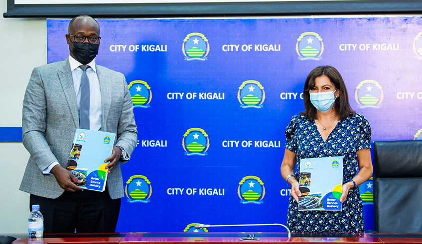 The Mayor of the City of Kigali, Pudence Rubingisa, and his Paris counterpart Anne Hidalgo on Tuesday signed a cooperation agreement spelling out different areas of cooperation between the two capitals. The signing of the agreement was held on the sidelines of the ongoing 41st AIMF summit that is underway in Kigali. AIMF is the General Assembly of the Association Internationale de Maires Francophones (AIMF), a summit that brings together mayors from cities in French-speaking countries. Over 200 leaders are in physical attendance while the rest join virtually. According to information from the City of Kigali, the deals inked include agreements of cooperation between the two cities in the areas of innovation, culture and new technologies. On his part, Rubingisa said that the agreement will among others help to improve the city and improve the living conditions of the people. Similarly, Mayor Hidalgo welcomed the partnership, citing that the City of Paris will benefit from cooperation with Kigali, especially in the field of art and environmental protection. Earlier on Tuesday, Hidalgo took time off to visit the Kigali Genocide Memorial – the final resting place for more than 250,000 victims of the Genocide against the Tutsi. At the memorial centre, she laid wreath and honored the Genocide victims. Hidalgo also made a stop at the Nyandungu urban wetland Eco-tourism Park. The park being created on 121.89 Ha is set to provide an urban recreational space, restore the hydrological functioning of the wetland and increase biodiversity, according to officials. Rwanda and France mainly enjoy cooperation around areas of digital transformation and innovation, health, sport & culture as well as private sector investments in various areas.