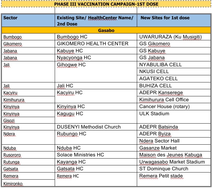 The City of Kigali has dedicated over 40 Covid-19 vaccination sites where an eligible person can go and present his or her identity card or any other official document that shows their age.