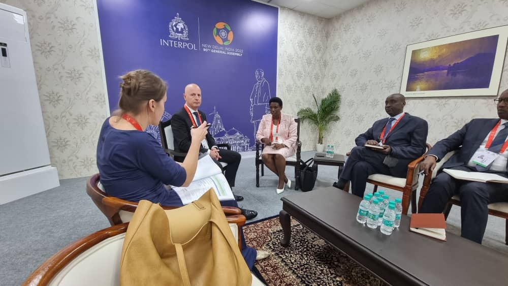 The Rwandan delegation headed by the Secretary General of Rwanda Investigation Bureau (RIB), Jeannot Ruhunga alongside Rwanda National Police (RNP) Deputy Inspector General of Police (DIGP) in charge of Administration and Personnel, Jeanne-Chantal Ujeneza, is in New Delhi, India where they are attending the 90th INTERPOL General Assembly, which started on October 18. Rwanda hosted the 84th Interpol General Assembly in November 2015. On the sideline of the ongoing 90th INTERPOL GA, on Tuesday, the Rwandan delegation held series of bilateral meetings with Police Chiefs and other high-ranking officials from law enforcement agencies in Europe and Africa. DIGP Ujeneza, during the meeting with the Commander-in-Chief of the Polish Police, Gen. Jaroslaw Szymczyk; they discussed ways for RNP and Polish Police to work together in various matters of policing, including capacity building and fight against transnational organized crime. DIGP Ujeneza also met with the Czech Republic Police delegation headed by Col. Sarka Hvrankova, the Director of International Police Cooperation. They also discussed ways to formalize cooperation especially in capacity development. Meanwhile, the Rwandan delegation held a meeting with the Governor Director General of Turkish Police National Police, Mr Mehmet Aktas, who appreciated the good relations between Rwanda and Turkey. In other separate bilateral meetings, the Rwandan delegation met with the Acting Botswana Commissioner of Police, Mr. Phemelo Ramakorwane, the National Commissioner of Eswatini Royal Police, Mr. William Dlamini, Namibian Police Chief, Lt. Gen Joseph Shimweelao Shikongo, Zimbabwe Commissioner General of Police, Mr. Tandabantu Godwin Matanga, and the General Commissioner of Belgian Federal Police, Mr. Marc Mesmaeker. Discussions focused on building and strengthening cooperation and collaboration in policing matters. The 90th Interpol General Assembly, which started on Tuesday, October 18, will this Wednesday focus on strengthening collaborative response to financial crime and corruption, governance and data processing as well as operational and strategic partnership.