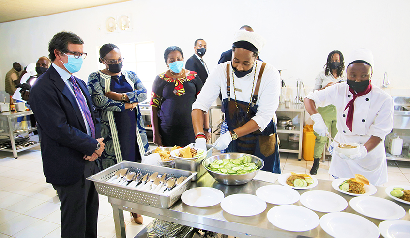 Officials tour at Gacuriro TVET school.The beneficiaries of the new project include students, trainers, school managers, public and private TVET schools involved in the tourism and hospitality sector.