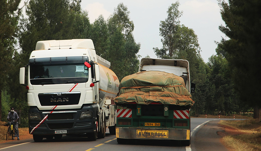 Cross-border cargo trucks transport goods on the Tanzania-Rwanda highway. As the African Continental Free Trade Area comes into effect, regional trade stakeholders have launched the MANSA, a source of data required to conduct due diligence on African entities; Financial Institutions, Corporates and SMEs. The digital platform provides a single primary source of Know-Your-Customer (KYC) data. / Photo: Craish Bahizi.