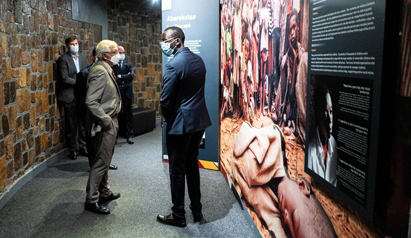 Josep Borrell (left) and members of the European Union delegation are taken through the history of the 1994 Genocide against the Tutsi at Kigali Genocide Memorial on October 25. / Photo: Courtesy.