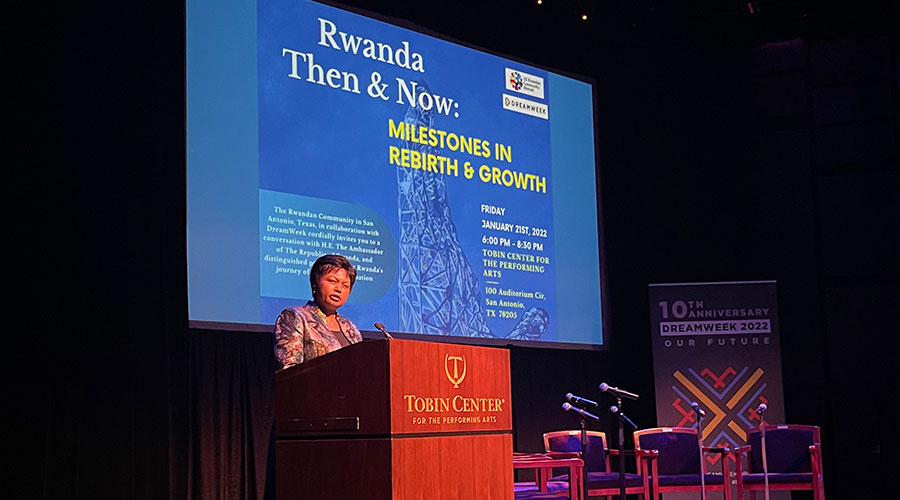 Rwanda’s ambassador to the United States, Mathilde Mukantabana, has drawn parallels between Martin Luther King Jr.s vision and Rwanda’s recovery after the 1994 Genocide against the Tutsi. She said this during a summit on Rwanda’s transformational journey, held in in San Antonio, Texas from January 21 to 22. Martin Luther King Jr. was an American Baptist minister and activist who became the most visible spokesman and leader in the civil rights movement from 1955 until his assassination in 1968. “We (Rwanda) designed a roadmap and made transformative choices that are still guiding us today [...] that can be summarized in three words: unity, accountability and thinking big,” Mukantabana said. The discussions during summit themed: Rwanda Then and Now; Milestone in Rebirth and Growth, explored Rwandas journey of post-genocide nation building. It was organized by the Rwandan Community of San Antonio in partnership with DreamVoice LLC, the organizers of the DreamWeek in San Antonio. The DreamWeek’s purpose is to advance and modernize the teachings set forth by Martin Luther’s vision; to lay the foundation of tolerance by creating dialog across cultures and communities. “Now, Rwanda is a country governed by the rule of law where unity and reconciliation have allowed people to come together to build a cohesive and prosperous nation. The notion of forgiveness is at the core of our being and has become our duty,” Mukantabana said. She added: “Martin Luther King philosophy strongly resonates with us in our constant quest for solutions through dialogue, consensus politics and inclusiveness. These concepts have been institutionalized and delivered through our home grown solutions such the national dialogue that takes place in Rwanda every year in December.” Other speakers included Dale Dawson, Founder and CEO of Bridge 2 Rwanda, Emmanuel Nibishaka, Deputy CEO Rwanda Governance Board, Dr. Fiacre Bienvenu, an adjutant professor at Steven J. Green School of International and Public Affairs at Florida International University and Yehoyada Mbangukira, President US Rwandan Community Abroad, among others. Bienvenu said: “For students of Rwanda, I’d like to remind them that in a productive way, it’s easy to forget that things could have gone further south hadn’t it not have been for a deeper thinking and natural authority of the leadership which preserved the nationhood, the Rwandan civilization, and continue to keep it from going extinct.” Dawson noted that: “Vision 2050 says that we’re going to be a high income nation in the next 30 years. The growth rate needs to be 10% plus a year. Rwanda before the pandemic was hitting over 10%. I think nurturing high capacity young talent that we need. “And also bringing in the vision we have at Bridge2Rwanda, to build a bridge to Rwanda that transforms lives at both ends. And what we’ve found is that when we bring our friends from the United States to Rwanda and they see and are inspired and given the opportunity to participate and to invest and to help, their lives are transformed.” Nibishaka said that many political scientists and commentator used to call Rwanda a failed state but with good governance the country has built a citizen centered sustainable development with regular monitoring of the principles of good governance. “Regular self-assessment is very essential in helping to identify area of improvement in a timely manner so that you don’t lose the momentum in building a better life. We also view these assessments as an essential tool to revitalize accountable governance that Rwanda has chosen,” he said. The summit was followed by ‘Night in Rwanda’ a social and cultural event featuring Rwandan cultural dances, food and expedition of Rwanda natural beauty. Rwandans in Texas and those that travelled from other parts of the United States were extended consular services including the opportunity to take biometrics. The event attracted over 500 people, physically and online, from civil society, media, academia, philanthropy, and business.