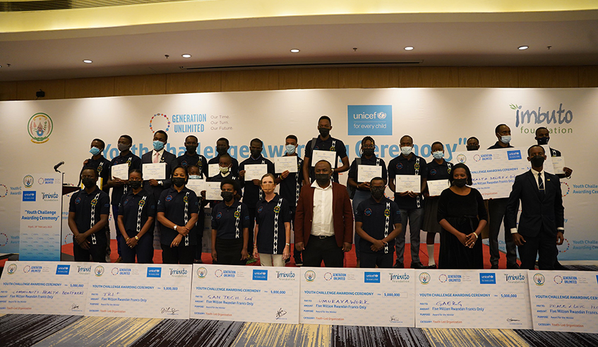 Eight youth-led organisations and 70 youths aged between 10 and 24 have been awarded in Youth Challenge Programme that aimed to encourage young people to deepen their involvement in civic engagement activities, contribute to solving community challenges, and use their holidays for personal growth and change-making activities. The programme is part of the implementation of Generation Unlimited (GenU) Rwanda Chapter, an initiative aimed at ensuring every young person aged between 10 and 24 is in school, learning, training or employed by 2030. The initiative was launched in Rwanda in September 2020. The contest, which was organised by the Ministry of Youth and Culture and other stakeholders consisted of two parts – Youth in Holiday Challenge and Youth-Led Organisations Hackathon. The attendees of the ceremony Through Youth in Holiday Challenge, more than 400 students participated in five categories; essays, short videos, songs, poems and drawings of cartoons while through Youth-Led Organisations Hackathon, over 50 youth-led organisations applied with their projects and 8 most impactful were selected to be awarded. The winning organisations include Peace and Love Proclaimers, TRI-Rwanda+, UmuravaWork, San Tech Ltd, Aspire Debate Rwanda, Health Relief and Development Organisation (HRDO), GAERG and Community Health Boosters, and each one has scooped Rwf 5 Million to help them strengthen their projects. The winners in Youth in Holiday Challenge were awarded with laptops, tablets, school bags, smartphones and certificates. Speaking at the awarding ceremony that was held in Kigali, Rosemary Mbabazi, the Minister of Youth and Culture noted that apart from building capacity of youth, GenU also tackles civic engagement as it promotes patriotism and other Rwandan values among youth, adding that it also involves youth in entrepreneurship and assess if they have skills to compete on labour market and what they are doing with that skill to grab existing opportunities. “We also look at what students transitioning from school to the labour market need. That includes mentorship and soft skills that can help them to be competent in the labour market,” she said. Vivens Uwizeyimana, Founder of UmuravaWork - a youth-led organisation that was awarded She noted that in Rwanda, the GenU initiative was launched during Covid-19, declaring that it is why they started with activities that challenged the pandemic so that students who were in holidays could use the opportunity to think, create and magnify their dreams. Vivens Uwizeyimana, the founder of UmuravaWork, a platform that he said has enabled businesses to access top young talents who specialise in business, technology, design creative, research and data which made them access, outsource and work with them efficiently for various projects whether in short term or long-term basis. He said that since there is still a gap in digital skills, his organisation which was awarded, is making sure that they provide various training and upscaling programs to impact young talents for them to be connected to different jobs either locally or globally. Happy Ntare Isimbi was awarded in poems category The uniqueness of our projects, he continued, relies on how we are balancing revenues and impacts in terms of business itself and how we are developing solutions that businesses are buying on a daily basis. Happy Ntare Isimbi, 10, who was awarded for her winning poem “Nimubadufatire” which calls upon the public to capture those who impregnate teen girls so that they can be brought to court, said that she was inspired by the fact that some men have raped and impregnated teenage girls during Covid-19 lockdown. With the help of her father, she seeks to expand her poetic talent and use the prizes she has scooped to excel in her studies