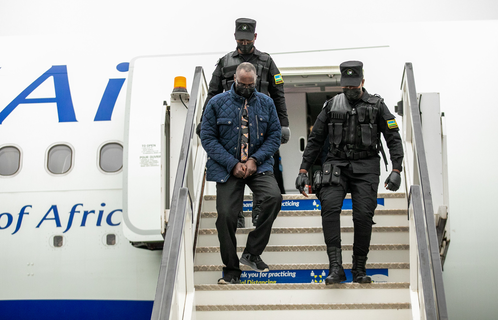 Suspect Micomyiza arrives in Kigali early Wednesday, April 27, after being extradited by the Kingdom of Sweden.Photo by Olivier Mugwiza
