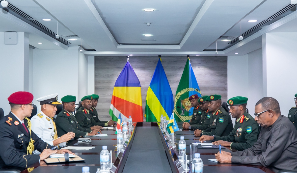 Gen Mubarakh Muganga, RDF Chief of Defence Staff meets the Chief of Defence Forces (CDF) of the Seychelles People’s Defence Forces (SPDF), Brigadier Michael Rosette at RDF Headquarters in Kigali on Tuesday, September 24. Courtesy