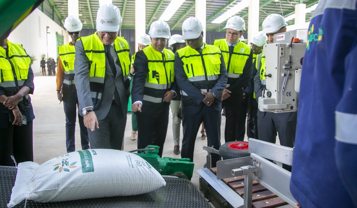 Officials during a guided tour of a fertilizer blending factory during its official launch in Bugesera District on December, 20, 2023. Foreign direct investment (FDI) inflows into Rwanda rose by 63.5 per cent. file