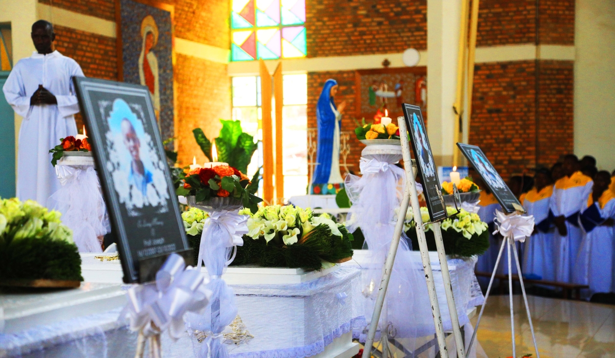 At around 10:45 a.m, a requiem mass to send off the deceased siblings at the Kabuga Diocese started with hundreds of relatives and friends of the children’s family attending as a sombre cloud hovered around the church.The children, Joseph Fruit Sikubwabo, 14, Herve Shami Sikubwabo, 13, and Honore Racine Sikubwabo, 10, died in a road accident on October 23, when a truck lost control and knocked them dead.As parents stood at the altar bidding farewell to their beloved children, they spoke dearly about their children.The father of the deceased children Donath Sikubwabo said, I am sad that Sikubwabo will not be able to serve the country as a soldier, as he always said that he will be a General when he grows up, he said, adding that, Shami wanted to be an electronic engineer and he always played with electronic gadgets, and the last born wanted to be a leader, but, unfortunately, their dreams have been curt short.In addressing his deceased sons, he said You've left us with loneliness that I can't explain, you will forever stay in our hearts, we had a lot of plans together but unfortunately, we can't go further with the plans.”Sikubwabo said that when he heard about the accident he went to Kacyiru hospital to wait for the bodies, adding that it was terrible since the bodies weren't recognisable.Sikubwabo thanked Rwanda National Police for standing together with the family and coming to their home to comfort them.The Representative of GS Nyagasambu said that the siblings loved each other, “I remember the elder brother would first drop the younger one to class and then proceed to his class.”He added that all of the three walked together each day, they were loving children and students “I comfort all of you to stay strong, we shall meet together with them in heaven.”The grandmother who was with the children at the time of the accident said the children were heading to attend their mother’s dissertation presentation when the accident happened. “They were here to celebrate with their mother. They wanted to stay and spend a night. At around 4p.m, I called the dad asking if I should let them sleep over or send them,” she said.“As we walked towards the bus stop, heard a heavy bang and suddenly everyone around me disappeared. They had fallen under the bridge,” she said.The deceased siblings were laid to rest today at around 12:50 at Rusororo cemetery.