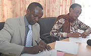Prosecutor General Martin Ngoga and Transparency Rwanda’s Immaculee Ingabire signing the MOU. (Photo/ J. Mbanda).