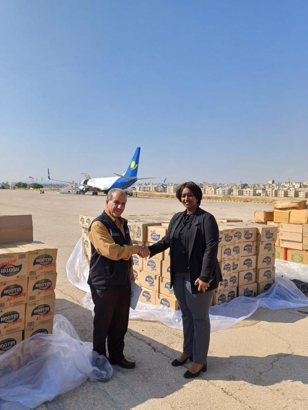 Rwanda, in partnership with the Hashemite Kingdom of Jordan, delivered a shipment of humanitarian assistance destined for Gaza. Courtesy