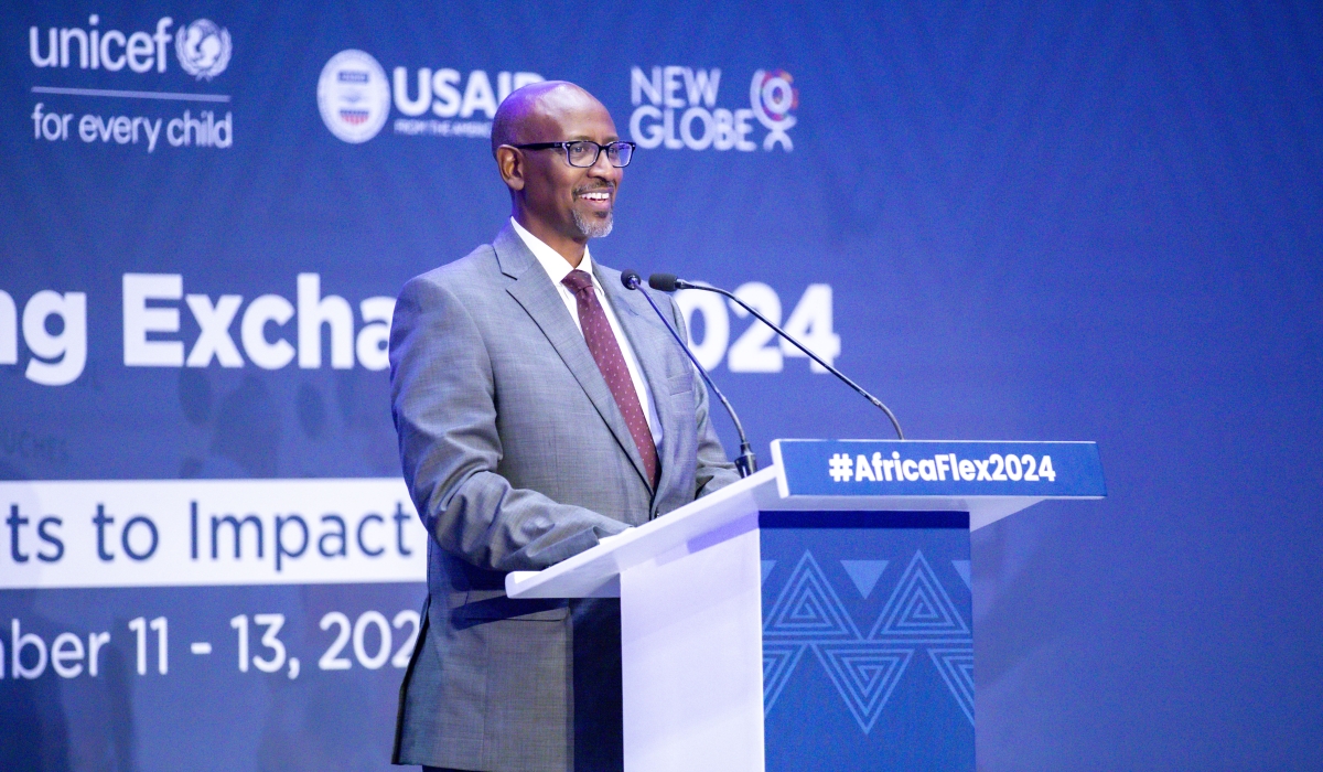 Joseph Nsengimana, Rwanda’s Minister of Education, speaks at the Africa Foundational Learning Exchange (FLEX) 2024 in Kigali on November 13. Photo by Emmanuel Dushimimana.