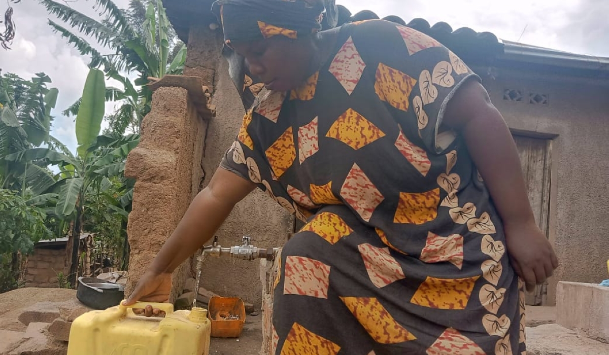 Afisa Muhawenimana fetches water from a newly installed station in Nyamugari sector in Kirehe. Muhawenimana lost her eldest son in 2022 when drowned in the Akagera River after he went to fetch water.