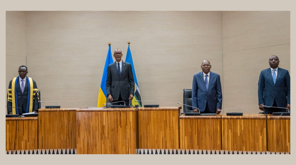 President Paul Kagame, Speaker of EALA ,Martin Ngoga, Senate President Augustin Iyamuremye and Prime Minister Edouard Ngirente at a Special Sitting of the East African Legislative Assembly in Kigali on November 1. Village Urugwir
