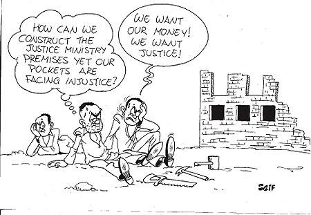 Over 200 workers constructing the new Ministry of Justice and Supreme Court premises are on a sit-down strike over non-payment.