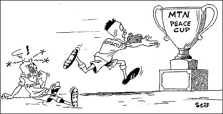 ATRACO are one foot into the MTN Peace Cup final after yesterday’s 2-1 first leg semi-final win over six-time champions Rayon Sport.