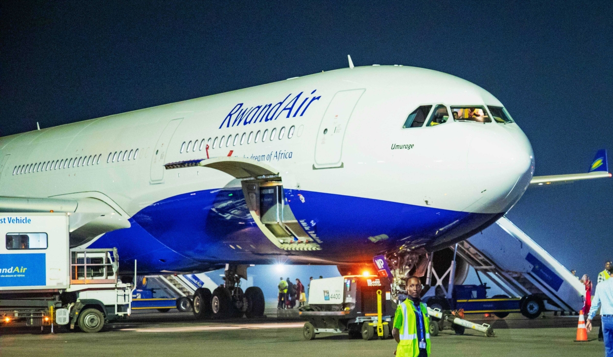 RwandAir 's airbus at Kigali International Airport in January 2020. The National carrier, RwandAir, has put in place a preferential freight tariff for Rwanda exporters under the African Continental Free Trade Area (file)