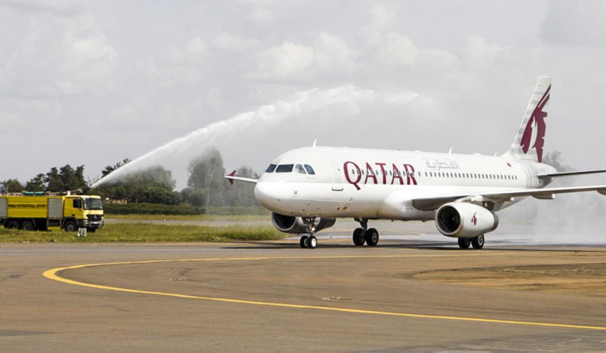 Qatar Airways plane lands at Kigali International Airport at the inaugural flight to Rwanda in 2012. The company has announced plans to resume direct flights between Doha and Kigali from May 14.