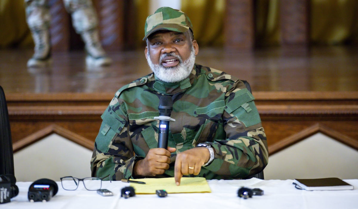 Alliance fleuve Congo leader Corneille Nangaa gestures during the rebel movement’s first press conference in Goma, the capital of North Kivu Province, in January. The rebels on Saturday, March 22, announced a tactical withdraw from the town of Walikale in line with a unilateral ceasefire declared on February 22. PHOTO BY EMMANUEL DUSHIMIMANA