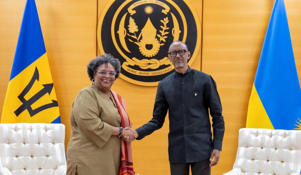 President Paul Kagame has this afternoon received the Prime Minister of Barbados Mia Amor Mottley, who is in Rwanda for a three-day state visit aimed at further strengthening bilateral relations between both countries. Both countries have recently laid out plans to strengthen bilateral cooperation in areas such as trade and investment, sports, tourism, agriculture among others. The two Heads of State will hold a tête-à-tête meeting followed by bilateral talks with members of both delegations, after which they are expected to address members of the press. Prime Minister Mottley will then visit the Kigali Genocide Memorial, where she will lay a wreath in honor of the over one million lives lost during the 1994 Genocide Against the Tutsi. The memorial is home to at least 250,000 victims of the tragic past. Later in the evening, Kagame will host Prime Minister Mottley and her delegation for a cocktail reception. Prime Minister Mottley’s visit to Rwanda follows Kagame’s visit to Barbados earlier this year which aimed at deepening existing relations between Rwanda and the Caribbean island. On Wednesday, November 9, Rwanda and Barbados signed cooperation agreements in the air services sector as well as in sports. Business delegations from both countries also met to explore investment opportunities. Speaking to The New Times in an exclusive interview, Emery Rubagenga, Honorary consul to Barbados said that the primary focus is to strengthen economic diplomacy between both countries. Rubagenga said that while Barbados was a gateway to the larger Caribbean region, Rwanda, too, is a launch-pad to the rest of the African market. When asked about any specific areas of cooperation, he said that talks had been initiated in various sectors including ICT, financial sectors, vaccine manufacturing capabilities, air travel, sports and tourism among others.