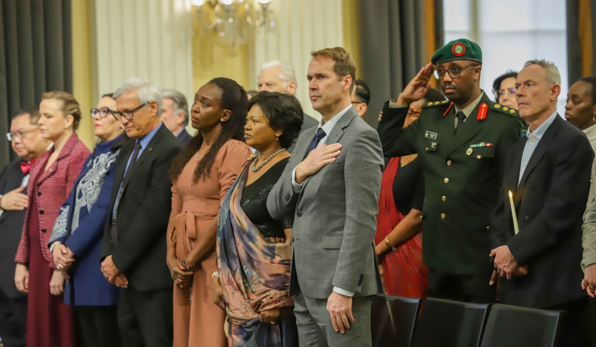 Mourners observe a moment of silence to honour victims of the Genocide against the Tutsi on Capitol Hill in Washington DC on Monday, April 7. Members of the diplomatic corps, U.S. Congress, academia, media, the Rwandan community, and friends of Rwanda gathered for the 31st commemoration of the 1994 Genocide against the Tutsi in Rwanda