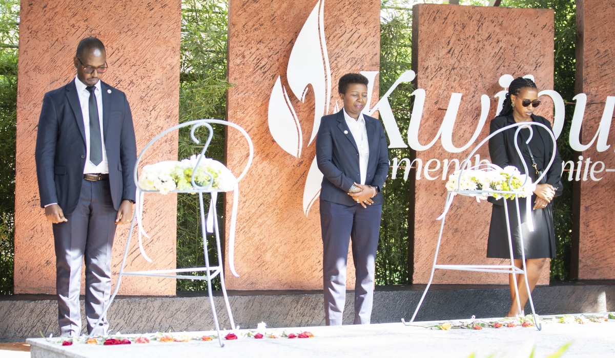 Rwanda Revenue Authority (RRA) and the Office of the Auditor General (OAG) officials observe a moment of silence at Kigali Genocide Memorial on Wednesday,