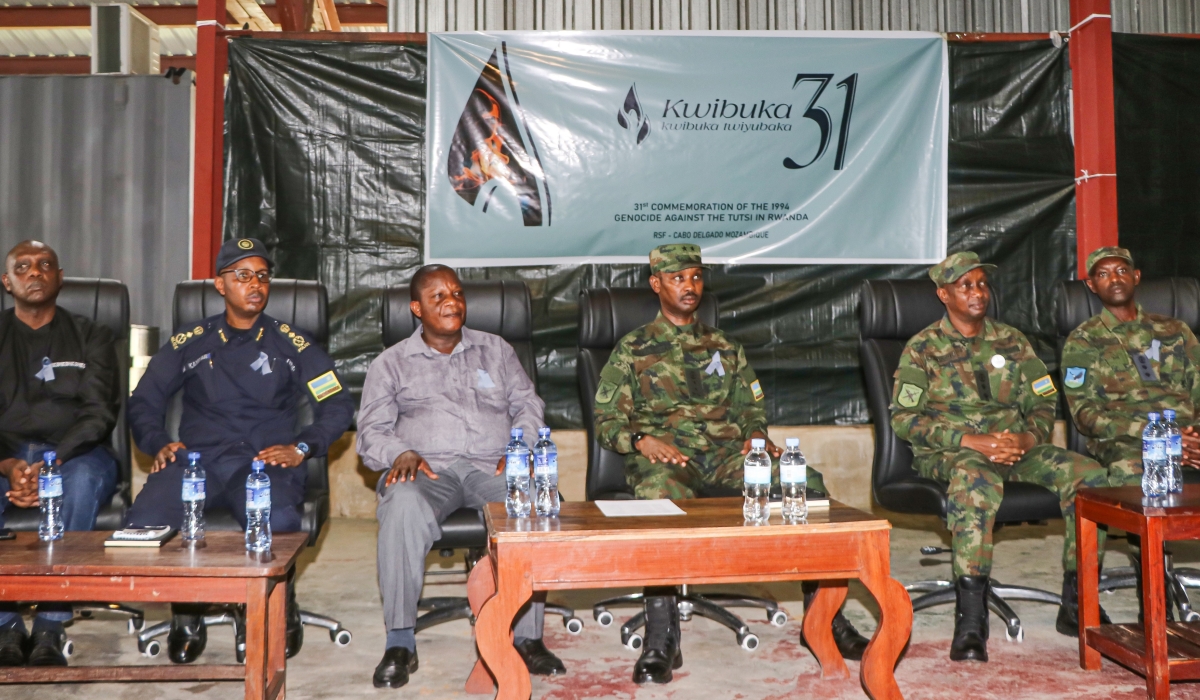 Rwanda Security Forces in Mozambique and with Mozambican security organs and friends of Rwanda marked the 31st commemoration of the 1994 Genocide against the Tutsi, in an event that took place in the town of Mocímboa da Praia, on April 13. ALSO READ: Kwibuka 31: Rwandan peacekeepers in CAR, South Sudan commemorate Speaking on behalf of the Government of Mozambique, the Administrator of Mocímboa da Praia District, Sérgio Cipriano, said that what happened in Rwanda must be a lesson for the whole world and should not happen anywhere else again. Cipriano also thanked Rwanda Security Forces for their dedication in bringing stability and fighting terrorism in Cabo Delgado province. ALSO READ: Kwibuka: Politicians urged to renew efforts to fight against genocide ideology Rwanda Security Forces Commander, Maj Gen Emmy Ruvusha, stated that the 1994 Genocide against the Tutsi resulted from an ideology that developed from ethnic divisions introduced by Belgian colonisers, who manipulated existing social classes. These divisions, fuelled by decades of bad governance culminated in the Genocide that claimed more than one million lives. Ruvusha added that Rwanda Patriotic Army, the military wing of the RPF-Inkotanyi fought to liberate Rwandans and stopped the genocide while the international community failed to intervene at a time when Rwandans were in desperate need of protection. He reminded the participants that Rwandans have committed to maintaining peace, unity and stability to make sure that what happened in 1994 never happens again.
