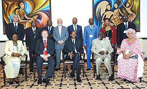 President Kagame with the visiting Ombudsmen yesterday. (Photo/ Urugwiro Village)