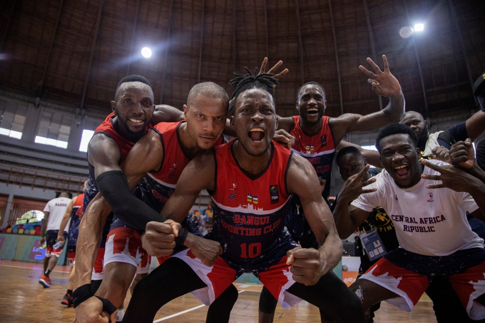 Bangui Sporting Club players celebrate as they closed the group unbeaten. Bangui City based team is among four teams that are set for what promises to be a titanic semi-final of the West Division Elite 16 on Friday November 18. Courtesy