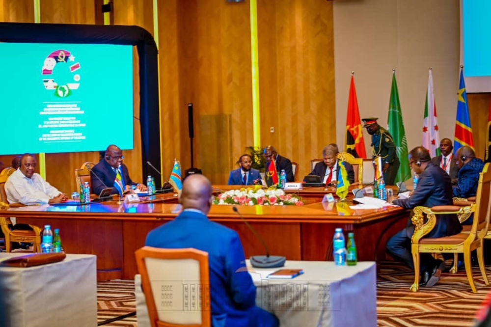 Presidents João Lourenço, the host, Felix Tshisekedi of DR Congo, Evariste Ndayishimiye of Burundi, and former Kenyan President Uhuru Kenyatta who is the facilitator of the East African Community-led peace process and Rwanda's Minister of Foreign Affairs Vincent Biruta during the mini-summit on the security crisis in eastern DR Congo in Luanda, Angola, on Wednesday, November 23. Courtesy