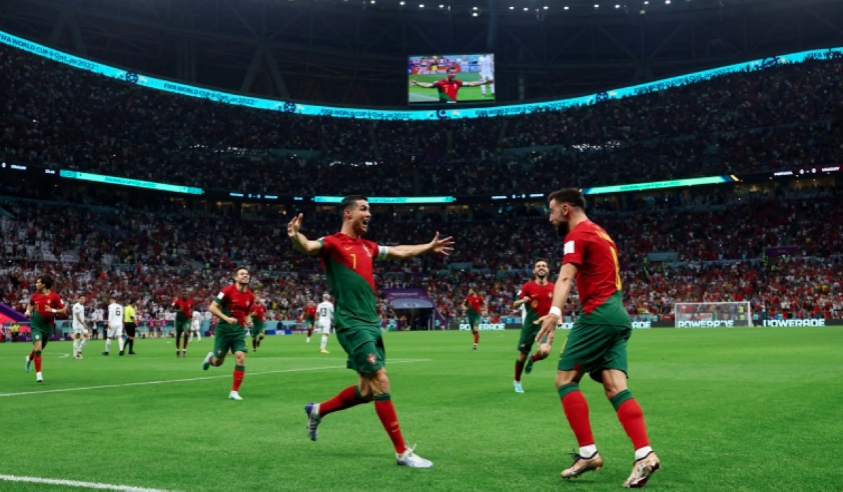 Bruno Fernandes scored a brace as Portugal beat Uruguay 2-0 to secure a place in the last 16 of the World Cup with a group game to spare. After a goalless first half on Monday in which Portugal dominated possession, the deadlock was broken in the 54th minute when a cross by Manchester United midfielder Fernandes flew into the net. Ronaldo had initially celebrated the goal as his after the ball seemed to graze his head, but ten minutes later FIFA ruled it had been Fernandes’s goal after all. Uruguay rang the changes with veteran striker Luis Suarez and Maximiliano Gomez brought on to replace Darwin Nunez and Edinson Cavani in the 72nd minute. But despite Suarez winning a free kick with some acrobatics and Gomez rattling the post shortly after his entry to the pitch, Uruguay could not convert opportunities into goals. Portugal were handed a penalty in injury time after a VAR review, with Jose Maria Gimenez judged to have handled the ball as he fell as Fernandes knocked it past him in the penalty area. Fernandes scored the penalty to put Portugal into the round of 16. Uruguay languished at the bottom of Group H, but could still qualify if they beat Ghana on Friday and Portugal win or draw against South Korea.