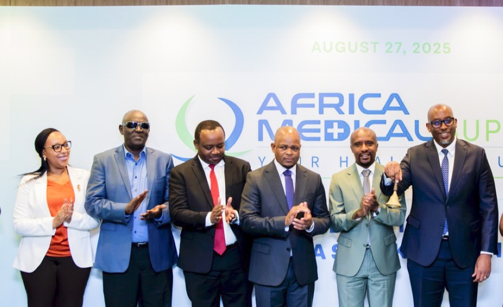 Officials attend the launch of the bond listing of Africa Medical Supplier PLC, marking the start of trading for the company’s Rwf 5 billion corporate bond on August 27, 2025. Dan Gatsinzi