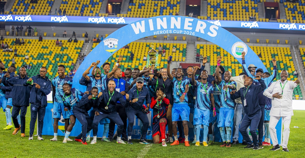 Final APR FC 1–1 Police FC (Police FC win 7–6 on penalties) Nigerian defender David Chimezie held his nerve to score the decisive penalty as Police FC lifted the Heroes Cup 2026, edging rivals APR FC 7–6 on penalties after a tense 1–1 draw in regulation time at Amahoro Stadium on Sunday. The triumph marked Police FC’s second Heroes Cup title in three years, having also defeated APR in the 2024 final. For APR FC, hopes of back-to-back titles ended in heartbreak after yet another agonising shootout loss. ALSO READ: Byiringiro’s penalty sends Police FC into Heroes Cup final The final began cautiously, with both sides showing mutual respect in midfield. Police captain Eric Nsabimana was the first to attract the referee’s attention, receiving a yellow card in the ninth minute for stopping Gilbert Byiringiro as he threatened to break into the box. Despite neat passing sequences from both teams, clear-cut chances were limited. Police came close in the 19th minute when Christian Ishimwe’s corner found Nsabimana, whose header drifted narrowly wide. APR responded through Hakim Kiwanuka and Gilbert Mugisha, but Mugisha failed to direct his header on target. APR goalkeeper Pierre Ishimwe was called into action late in the half, pushing away a powerful long-range effort from Byiringiro to keep the scores level. The first half ended goalless. ALSO READ: APR FC thrash AS Kigali 3–0 to reach Heroes Cup final APR FC emerged with greater intent after the restart and were rewarded in the 52nd minute. William Togui produced a moment of brilliance, finishing with a stunning bicycle kick after a perfectly delivered cross from Kiwanuka to give the defending champions the lead. Police FC gradually grew into the contest and found their equaliser in the 67th minute. Leonard Gakwaya capitalised after APR defender Yunussu Nshimiyimana collided with his own goalkeeper, calmly slotting home to restore parity. Both sides pushed for a winner in the closing stages. Police survived a dramatic goal-line clearance by Dieudonné Ndayishimiye, while APR threatened through Mamadou Sy and Togui, both denied by Police goalkeeper Onesime Rukundo, whose saves forced the match into penalties. Penalty drama decides winners The shootout proved long and nerve-racking, with both teams converting confidently in the early rounds. Police’s trump card was goalkeeper Patience Niyongira, introduced late in the second half, who saved crucial penalties from Dauda Yussif, William Togui, and Ronald Ssekiganda. The decisive moment arrived when Chimezie stepped up to convert the ninth penalty, sealing a 7–6 victory and sparking wild celebrations among Police FC players and supporters. Rayon Sports WFC on the podium again... The women’s Heroes Cup ended on favour of Rayon Sports WFC after they defeated Indahangarwa in the final earlier in the day. Emeline Mukagatete and Angelique Umuhoza were on target for the Blues who dominated the final to win their second trophy of the season after beating the same team to win the Super Cup.